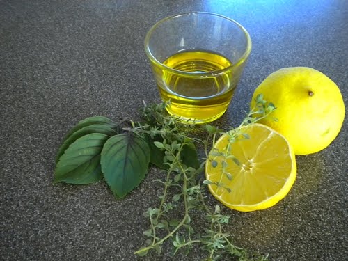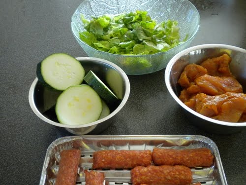 hinten am bild siehst du grünen salat – der mit balsamico und olivenöl abgemacht wird