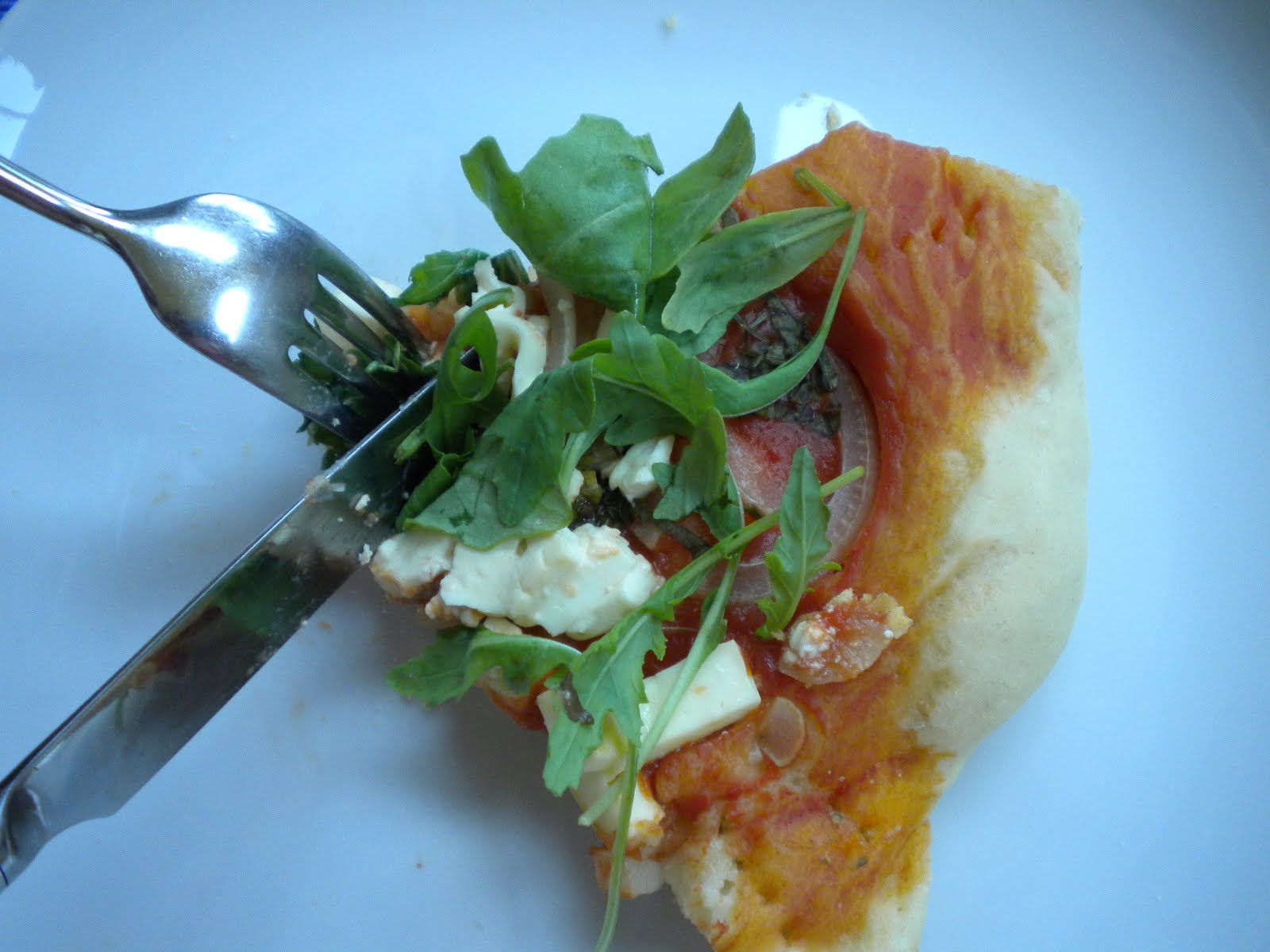 Pizza mit Schafkäse und Ruccola