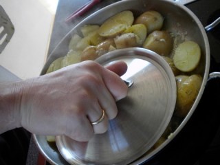 > mit einem Kochtopfdeckel leicht zerquetschen > tolle Idee hmm? > noch kurz anbraten >