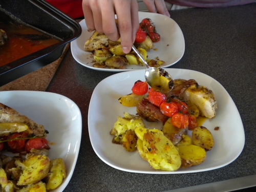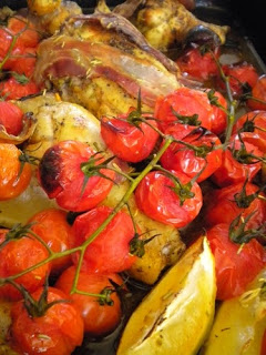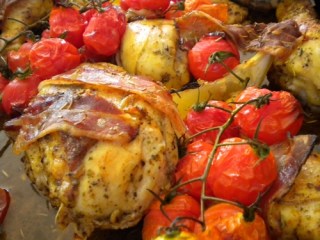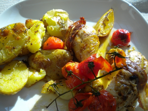 Henderl und Paradeiser aus dem Ofen