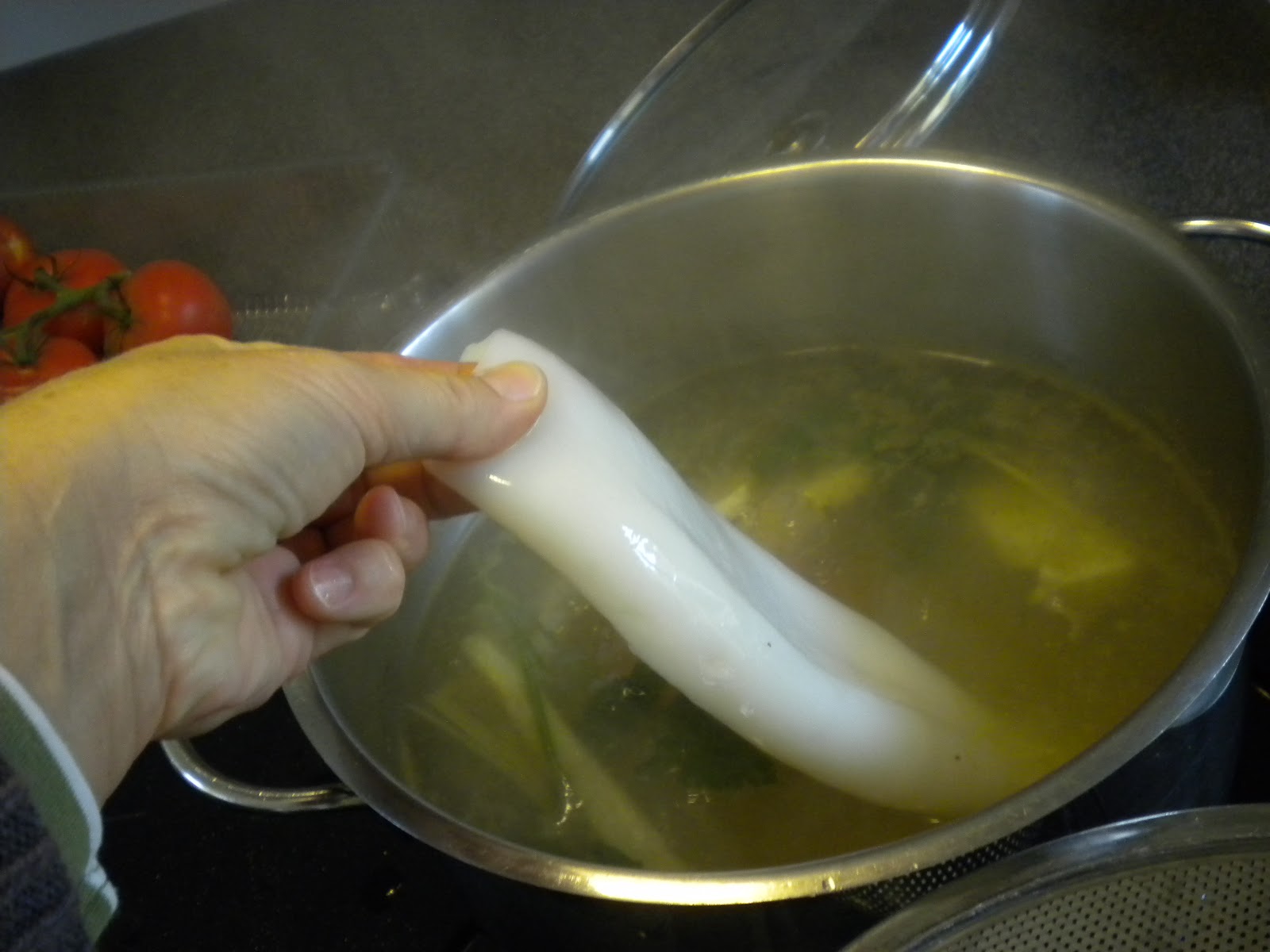 1/2 l sud von den meeresfrüchten (fischfond) mit etwas huhnersuppe gemischt