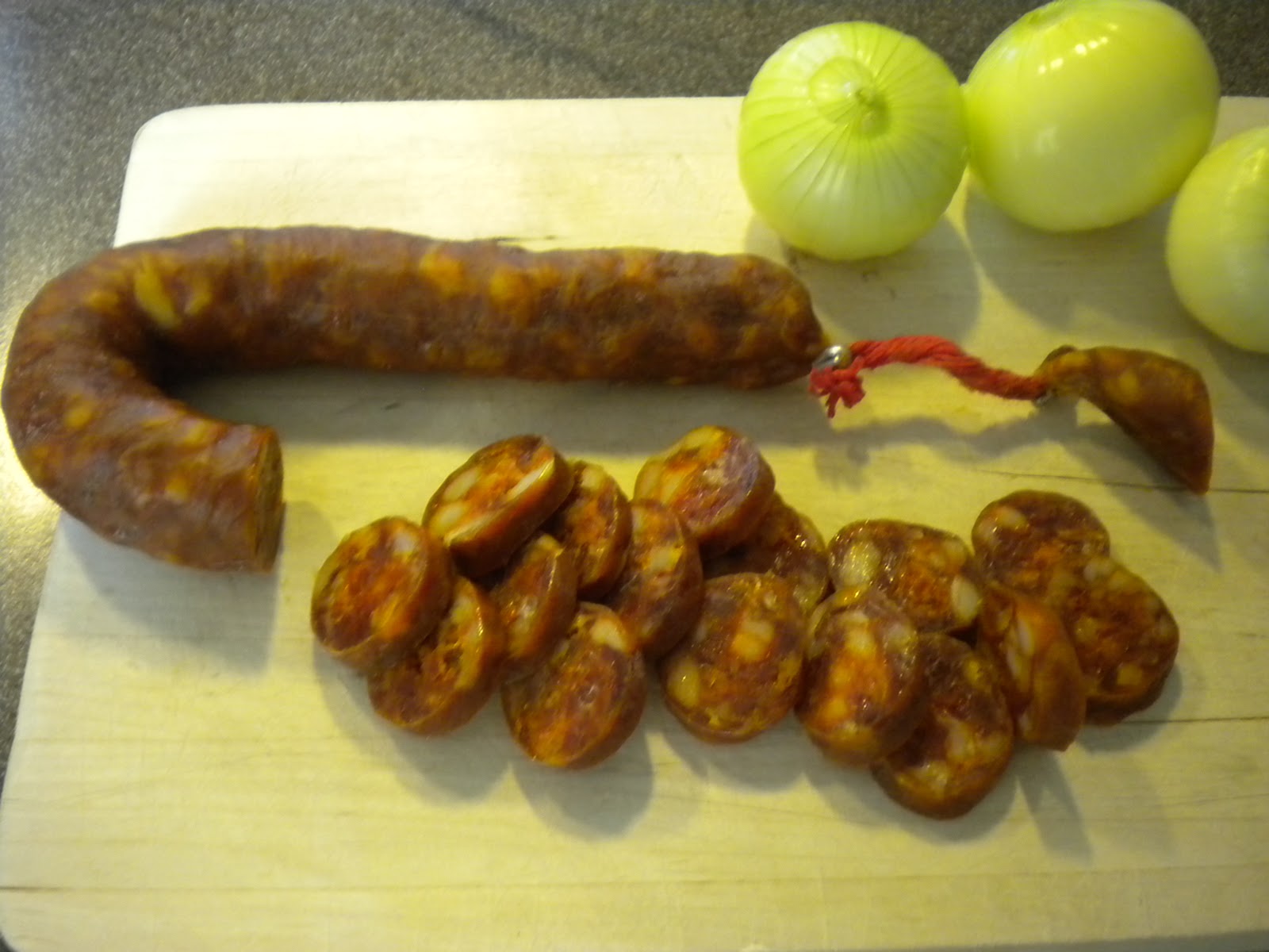 150 g tk – erbsen, ein stangerl chorizzo (spa.würstel)