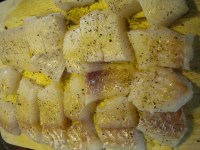 > fischfilets in würfel schneiden > salzen und pfeffern >
