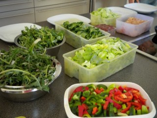 > Salate waschen > ein Salatbett auf einemTeller anrichten >