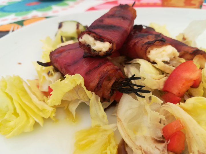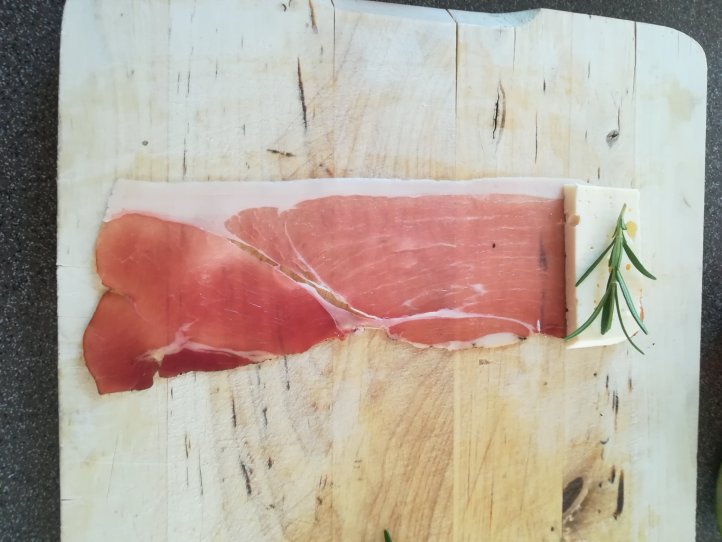 schafkäse schneiden > in rohschinken wickeln > dazwischen frische kräuter