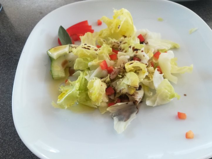 während die röllchen bei indirekter hitze gegrillt werden > richte das salatbett her >