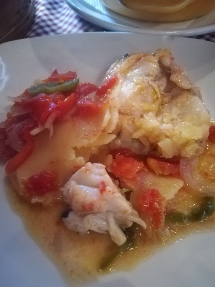 catalpana de peixe ist ein traditioneller fischeintopf aus vier verschiedenen fischsorten, gemüse, zwiebel und erdäpfel