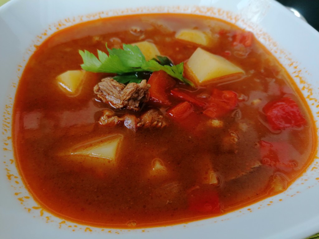 feurig – herzhaft – da spürst du die pannonische tiefebene, ziehst dir deine roten tanzstiefel an und wirst zur piroschka, wenn du den löffel in den mund nimmst…igen!!!