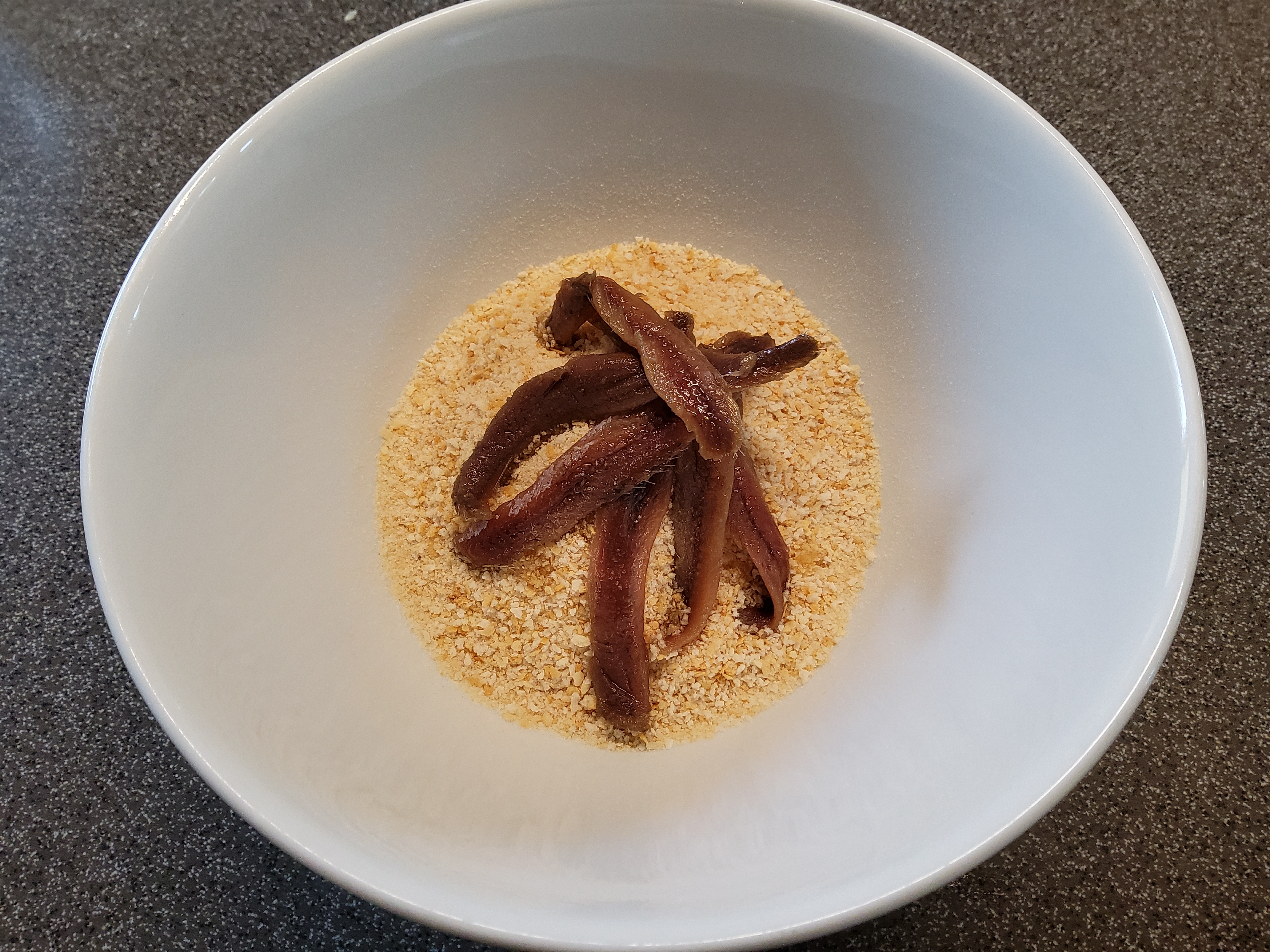 pürierstab noch nicht wegräumen, denn jetzt werden noch 6 sardellenfilets mit brösel gemixt