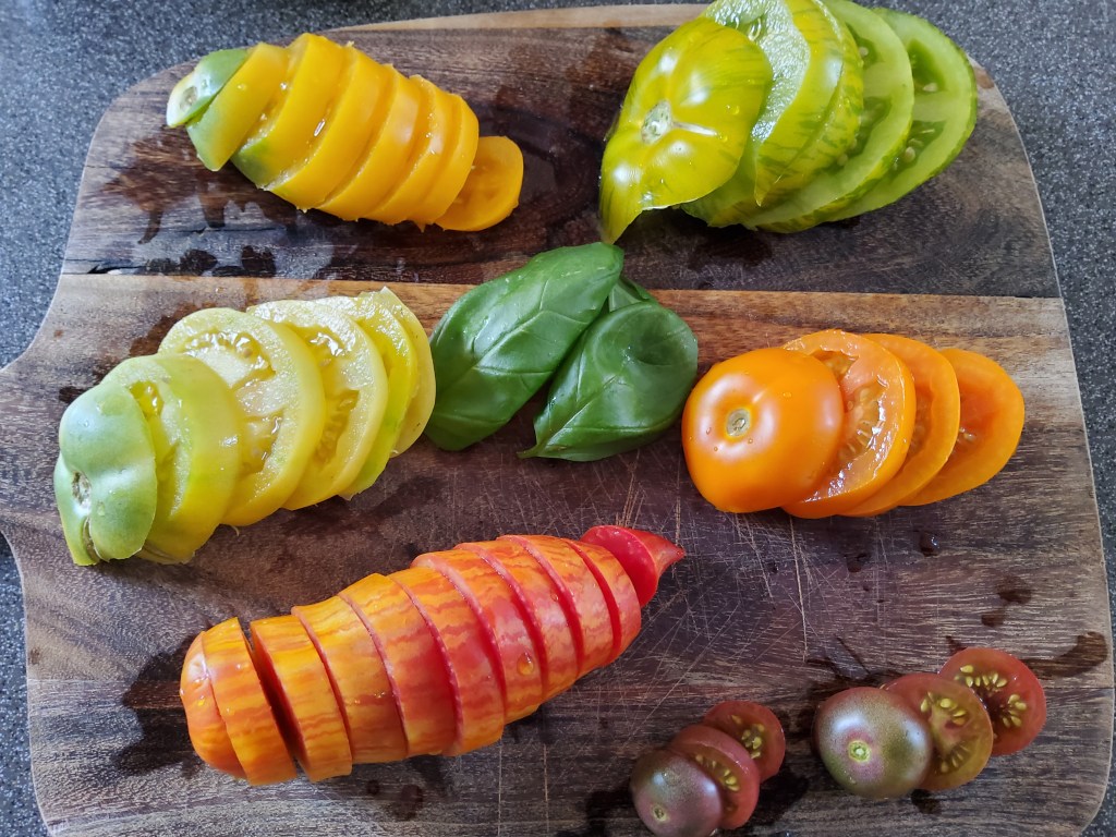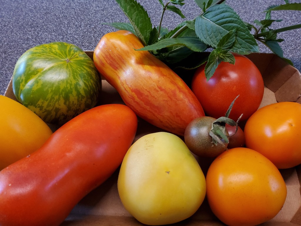 unter den minzeblättern, da haben wir die mirimiri. ovalrunde cocktailparadeis, sehr festfleischig und saftig.