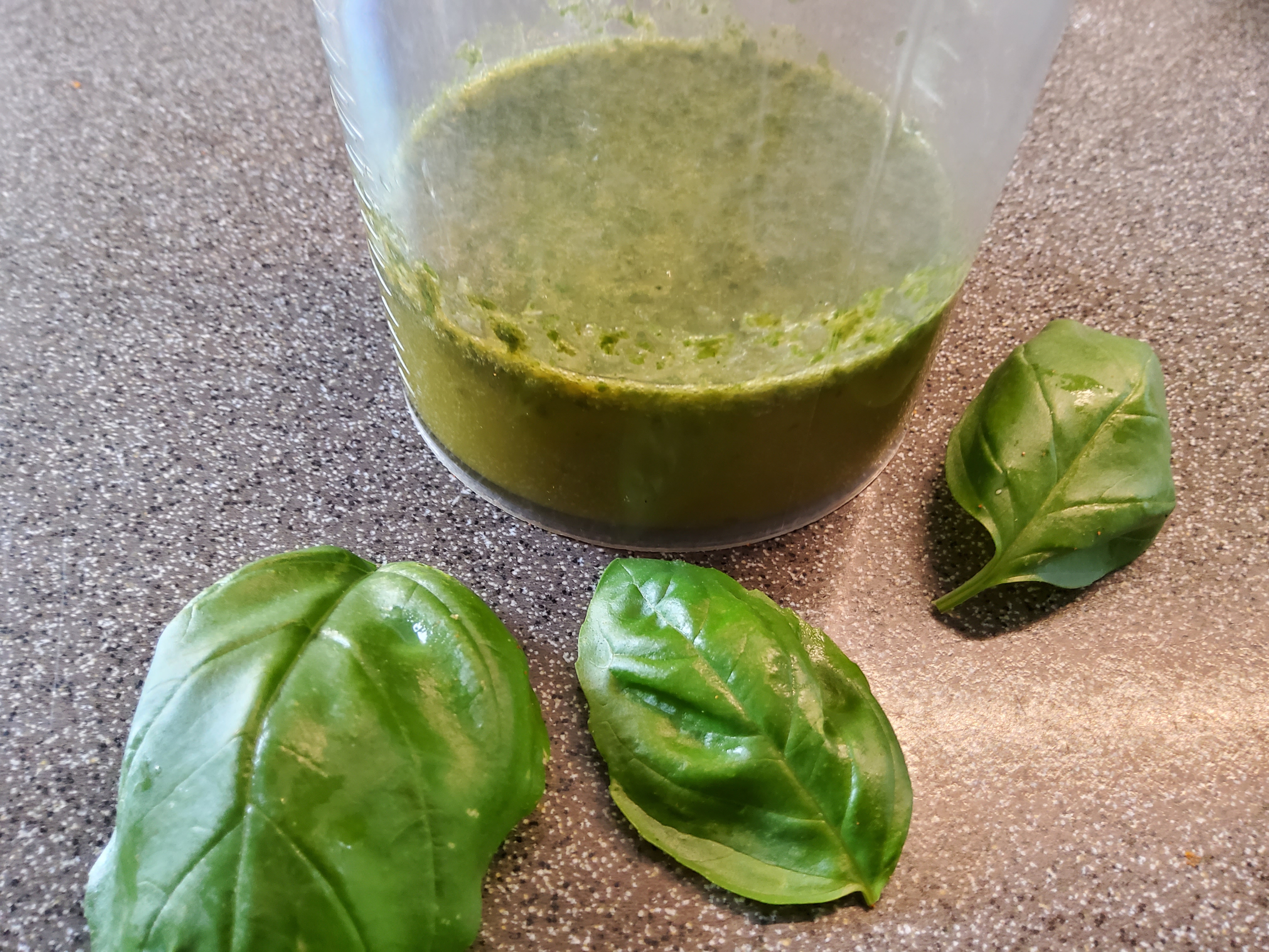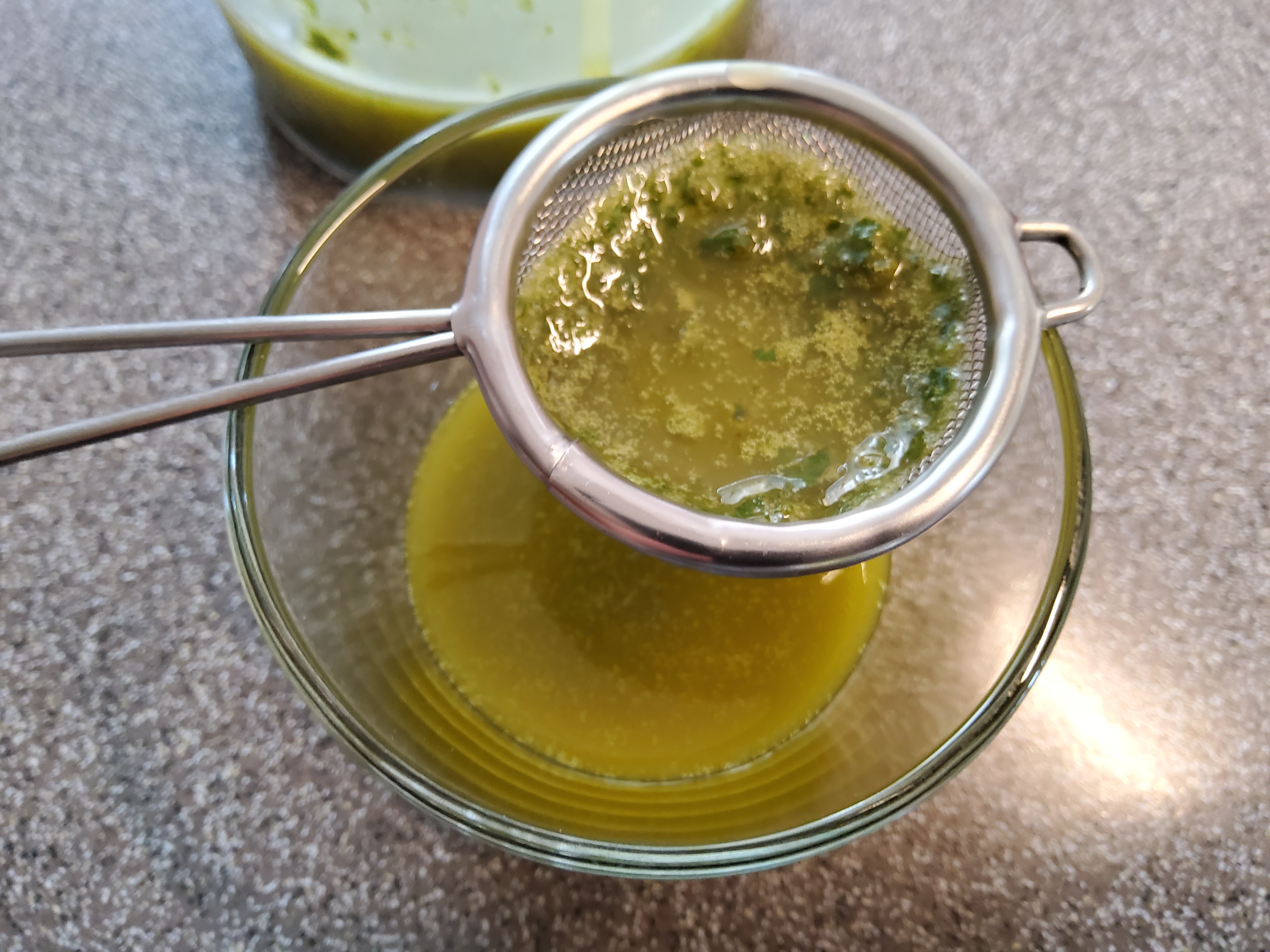 olivenöl mit basilikumblätter glatt mixen und danach ein bisserl ausrasten lassen und durch ein sieb giessen