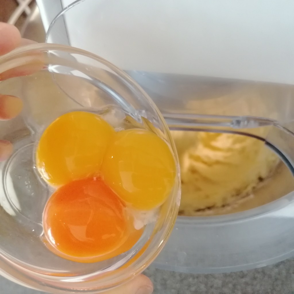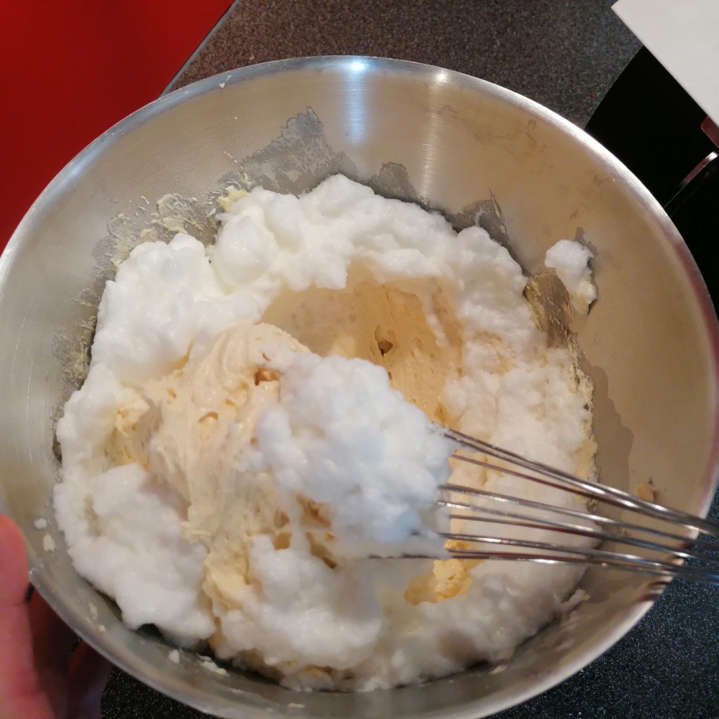 eidotter + milch + das vorher geschlagene eiklar = schnee dazu