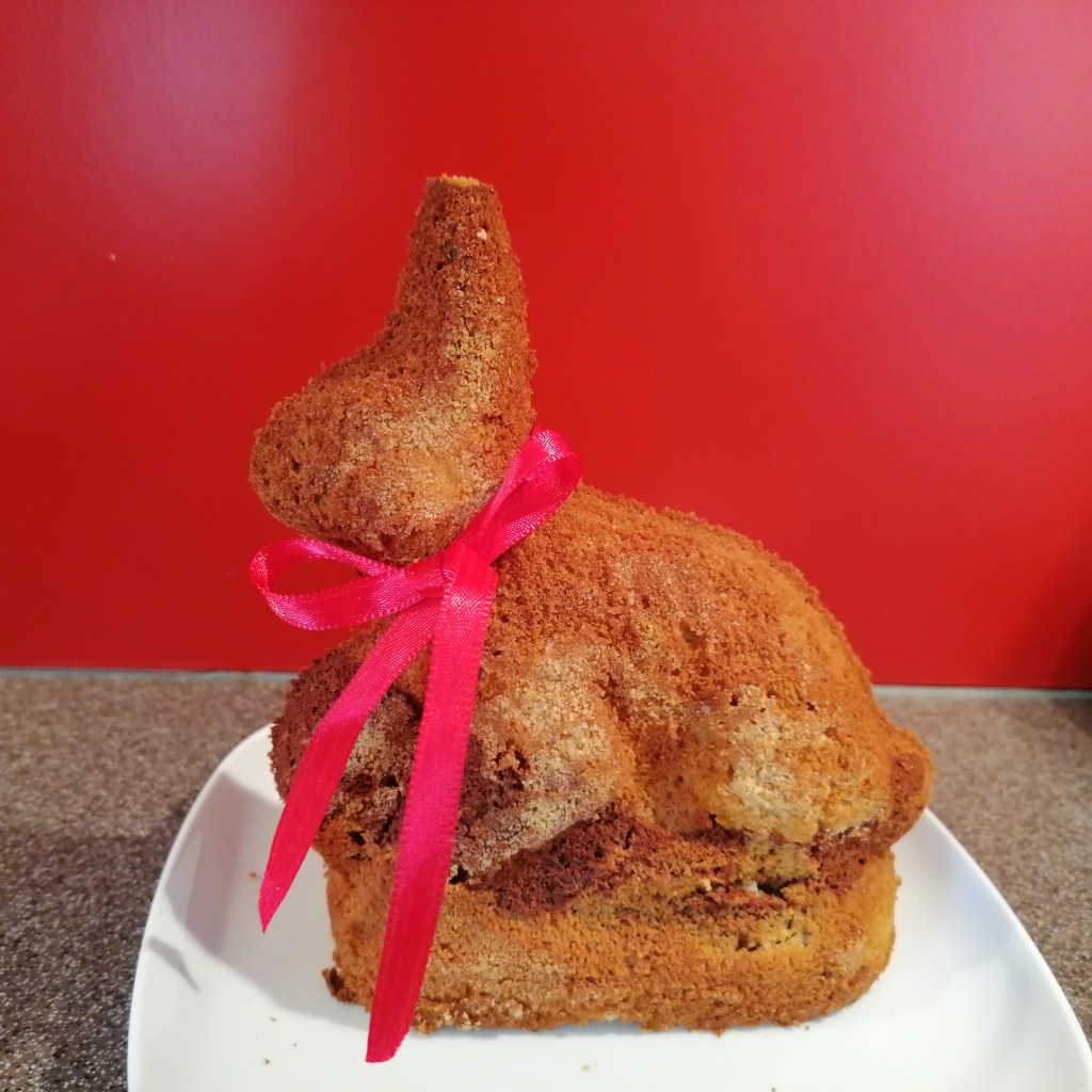 gugelhupfform einfetten und einbröseln – ich hab auch gleich ein 🐰osterhaserl mitgebacken