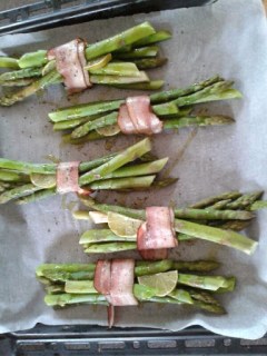 spargel in wasser kurz kochen > grüppchenweise auf backblech legen >