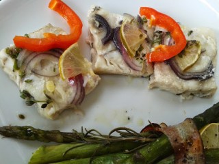 kabeljau auf alufolie legen > salzen, pfeffern >